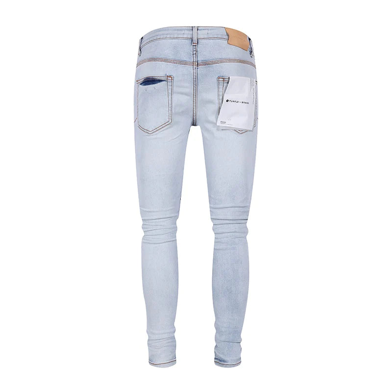 Introducing the Purple Brand Low Rise Skinny Jeans, the ultimate staple for your streetwear wardrobe. Made from a high-quality cotton and lycra blend, these jeans offer a comfortable and flexible fit. With their low rise and skinny style, along with the classic 5-pocket styling and button fly, these jeans are designed to keep you looking stylish and on-trend.